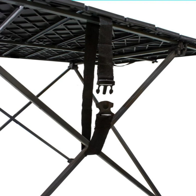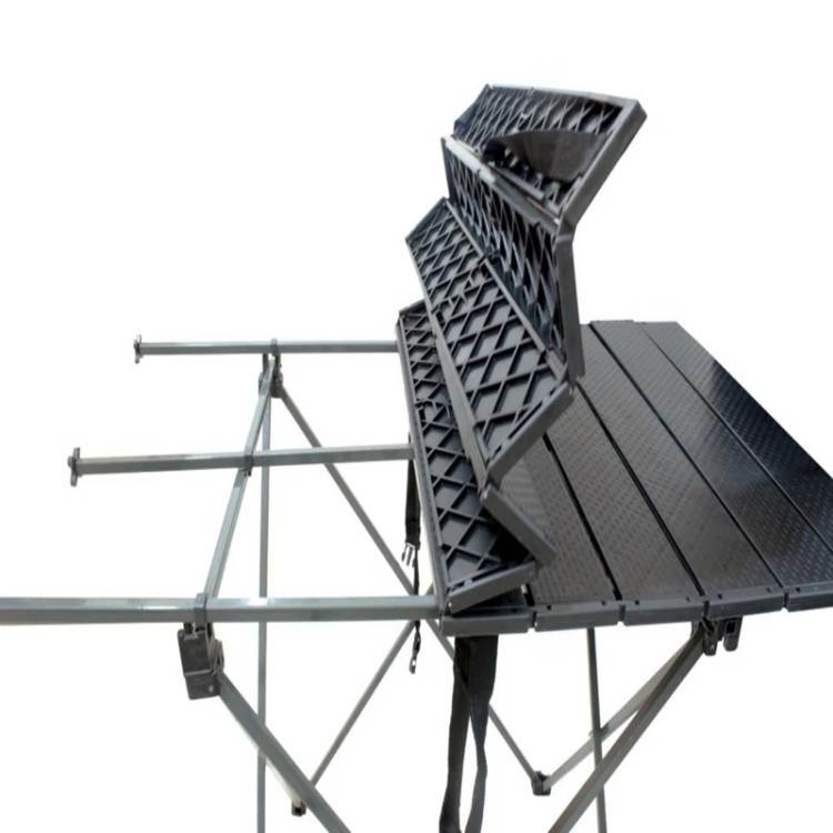 میز تاشو مسافرتی بزرگ آتروپاد مدل APD-FB، یکی از جدید ترین میز مسافرتی تولید شده توسط برند ایرانی ای پی دی بوده که بر خلاف مدل قبلی خود کمی از ابعاد بزرگتری برخوردار می باشد از همین رو بازه انتخاب مصرف کنندگان را بر اساس نیاز های خود افزایش داده است. این میز تاشو کمپینگ در واقع متشکل از سه قسمت مجزا بوده که به سادگی به یکدیگر متصل شده و قابل استفاده خواهد بود. صفحه رویی، پایه تاشو و فریم های متصل کننده صفحه رویه به پایه های تاشو، سه قسمت تشکیل دهنده این میز محسوب می شود. پایه و فریم ها تولید شده از آلیاژ فلز روکش دار ضد زنگ بوده که در برابر فرسایش و تغییر رنگ و همچنین در برابر تغییر حالت مقاوم خواهد بود. این پایه ها در قسمتی که روی زمین قرار می گیرند دارای ترمز های پلاستیکی فشرده بوده تا از لغزش و سر خوردن هنگام استفاده جلوگیری کند. همچنین صفحه رویی نیز تولید شده از جنس پلی پروپیلن با رویه طرح دار بوده از رنگ تیره بهره می برد. دو تسمه برزنتی در قسمت های کناری و دو تسمه دیگر در دو طرف دیگر میز تعبیه شده که همگی با توجه به داشتن قفل پلاستیکی استحکام این میز را افزایش می دهند. ابعاد باز شده میز تاشو برابر با 82 × 50 × 59 سانتی متر بوده در حالی که این میز در شکل جمع شده ابعاد 83 در 21 سانتی متر به خود می گیرد تا با توجه به داشتن وزنی حدود 3.7 کیلوگرم به وسیله ساک حمل مخصوص به خود به سادگی قابل حمل باشد. این ساک حمل برزنتی ضد آب بوده و دارای زیپ و دستگیره نیز می باشد.